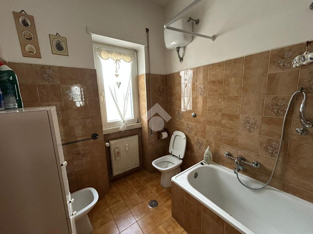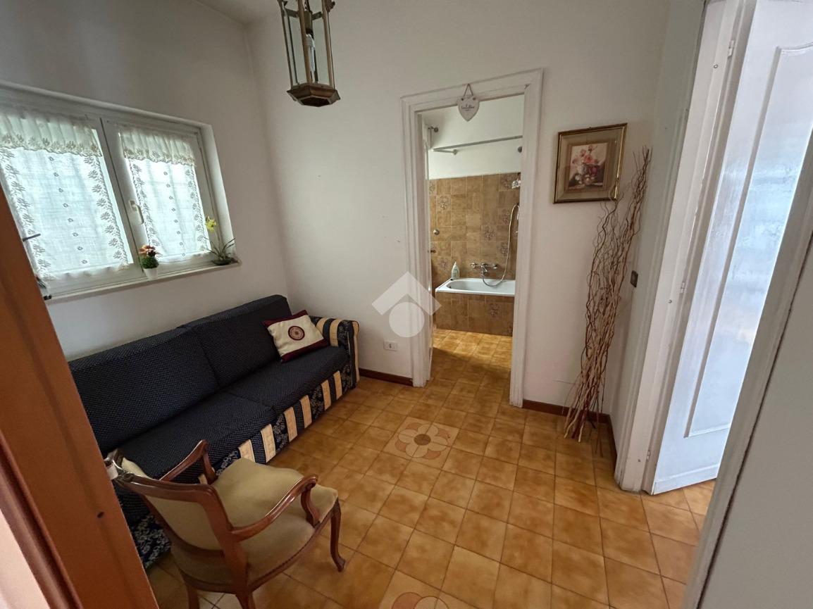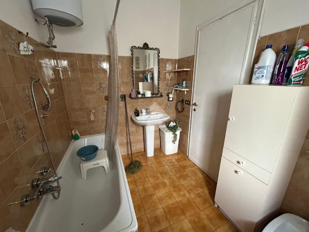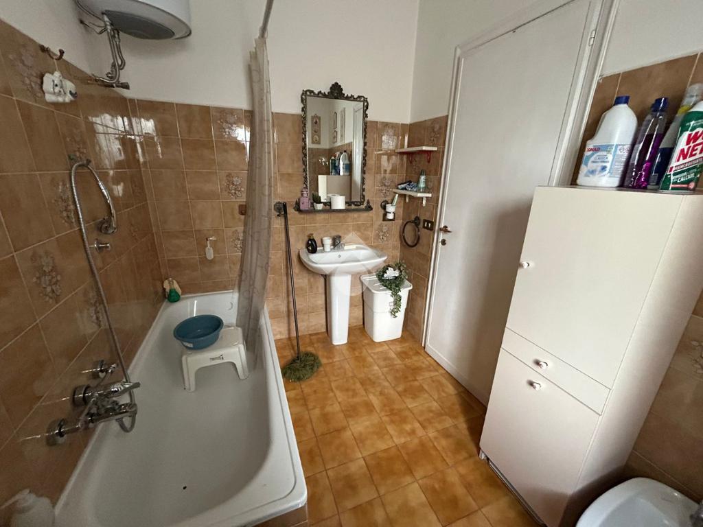 Tornando indietro, tramite lo spazioso disimpegno, che è ambiente di collegamento dei restanti ambienti, troviamo alla nostra destra, la zona notte/zona giorno con accesso diretto al balcone. Di fronte a noi abbiamo ,invece, il bagno con vasca e finestra, dove sono stati appena sostituiti i sanitari.