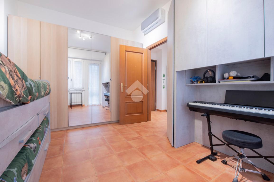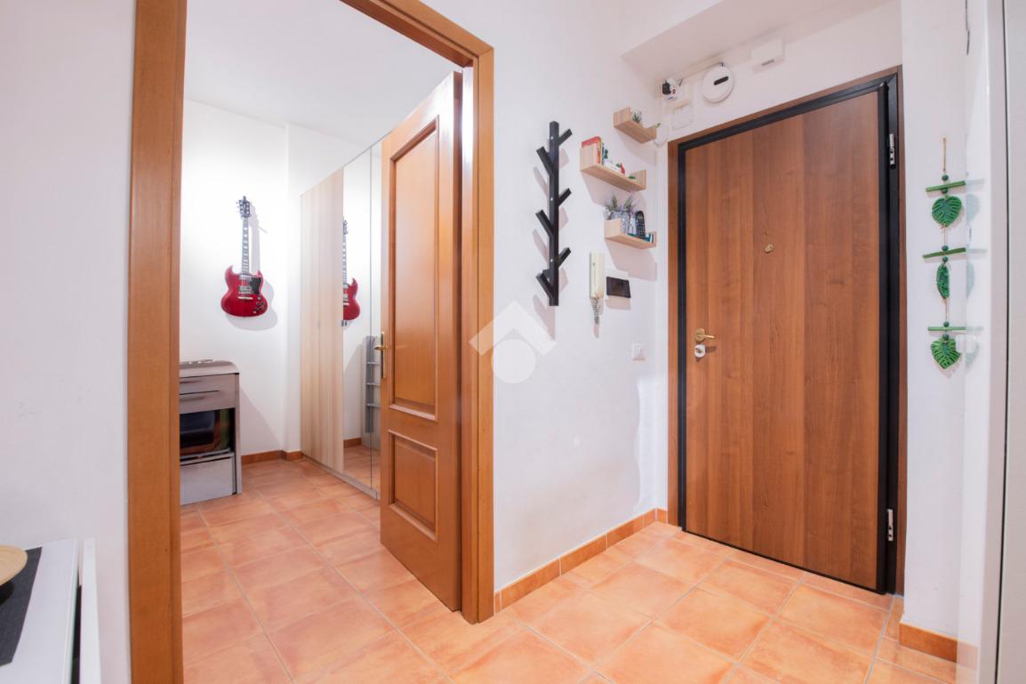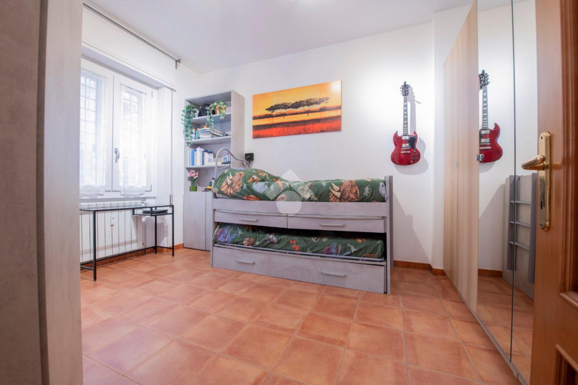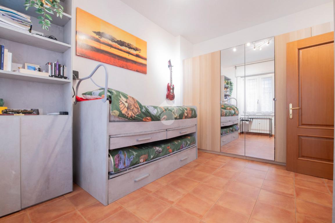 Il disimpegno divide la zona notte composta da una camera da letto matrimoniale di 14 mq. Il bagno presenta un ampio box doccia con finestra.