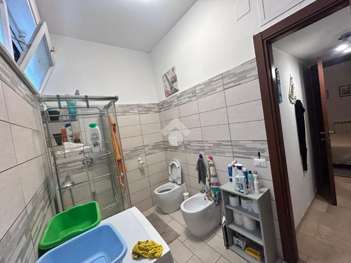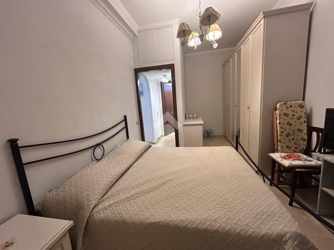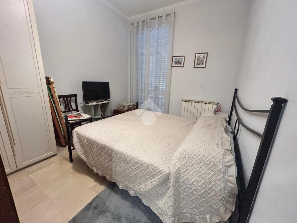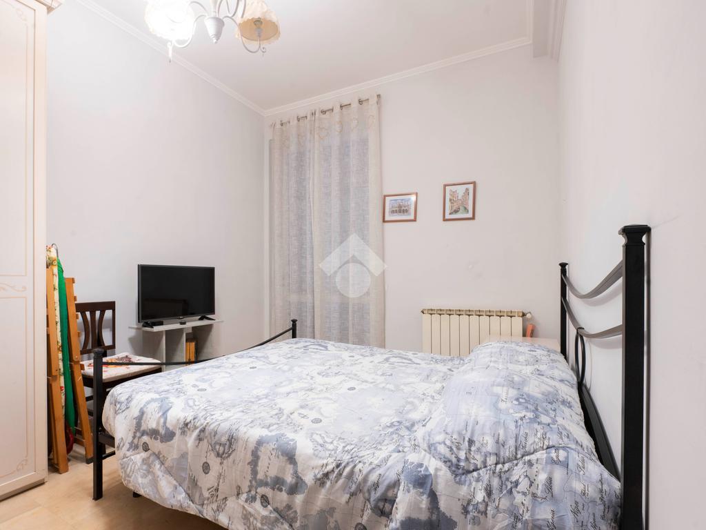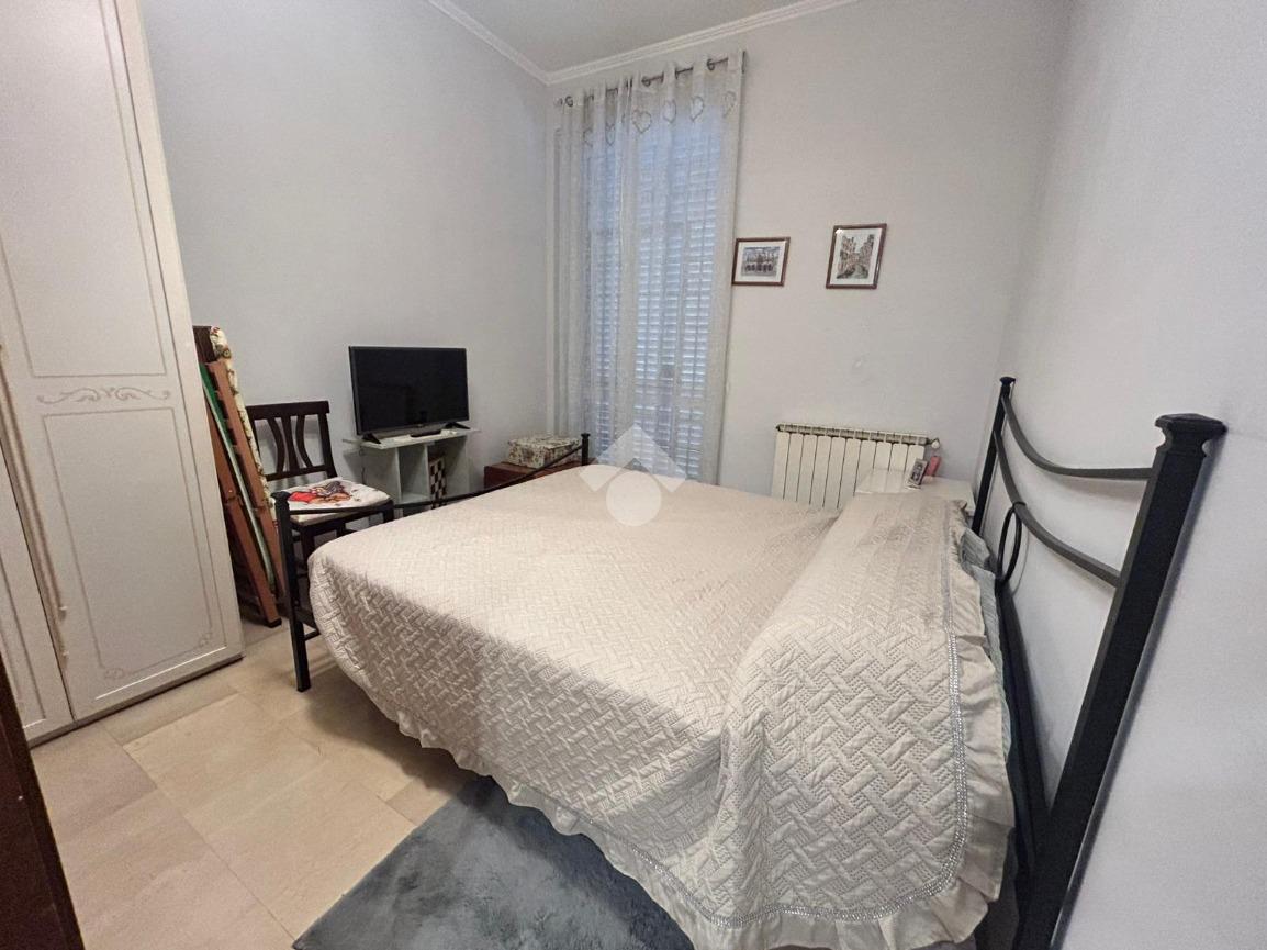 Il disimpegno divide la zona notte composta da una camera da letto matrimoniale di 14 mq e bagno ristrutturato di recente con box doccia e finestra.