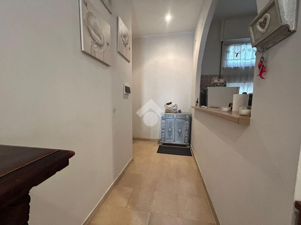 Varcata la porta di accesso della casa veniamo accolti nell’ingresso alla sinistra del quale si sviluppa la cucina separata, ma comunicante con il soggiorno, grazie ad un grande arco. L'ampio soggiorno ci conduce direttamente tramite porta finestra al balcone abitabile della casa, dal quale si accede anche alla camera da letto.