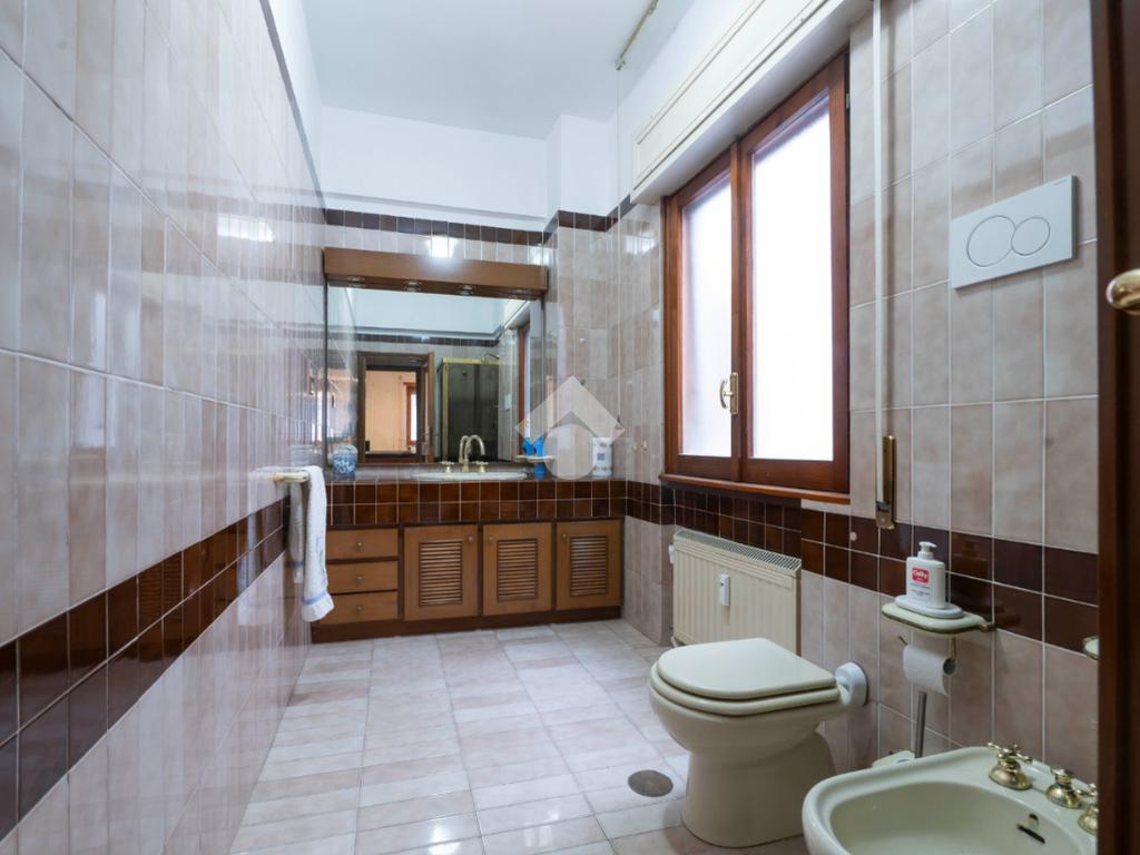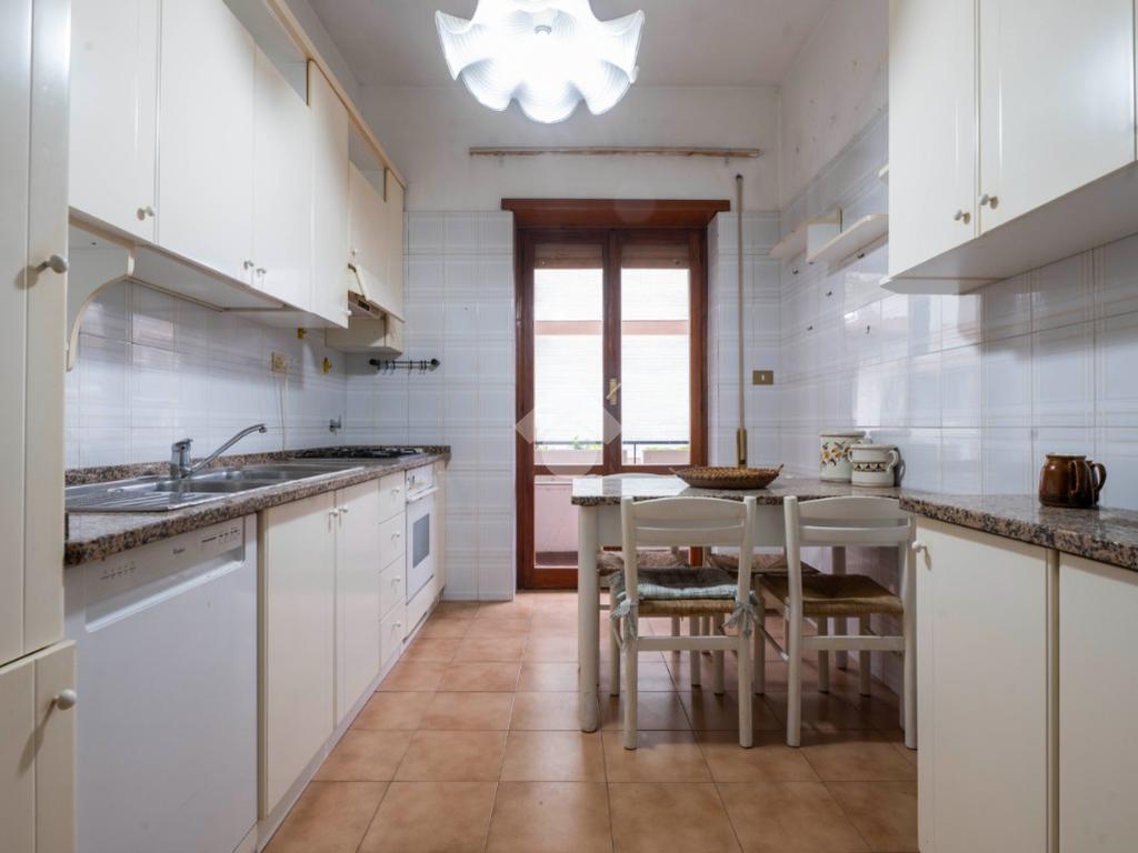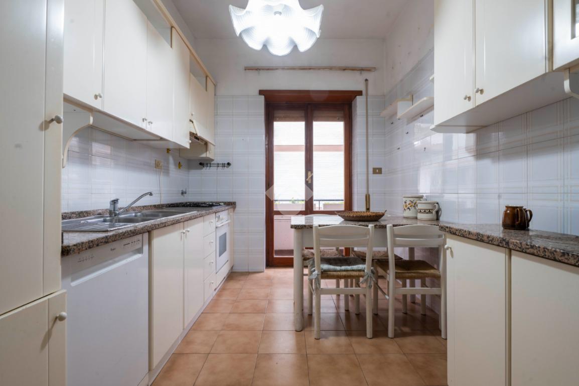 Internamente l'immobile è così composto. Dall'ampio ingresso arredabile di oltre 14 mq è possibile accedere al salone doppio di 37 mq. Quest'ultimo presenta l'accesso diretto allo spazio esterno della casa, un balcone angolare, in parte abitabile, di oltre 20 mq. L'affaccio esterno risulta molto piacevole grazie alla visuale sulla Pineta. Tornando indietro, alla sinistra dell'ingresso, è possibile accedere al disimpegno che conduce ai restanti ambienti della casa. Percorso il disimpegno di fronte a noi troviamo la cucina abitabile con accesso diretto al balcone. La zona notte risulta composta da due camere da letto matrimoniali, di 17,6 mq e 15,15 mq, la maggiore della quali presenta l'accesso al balcone, e dall'ampio bagno di 6,5 mq con finestra e piatto doccia. Troviamo infine un ultimo ambiente di quasi 3mq attualmente adibito a ripostiglio. Il ripostiglio, finestrato, è adiacente al bagno presistente e dunque facilmente ripristinabile a secondo bagno.