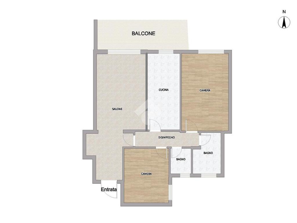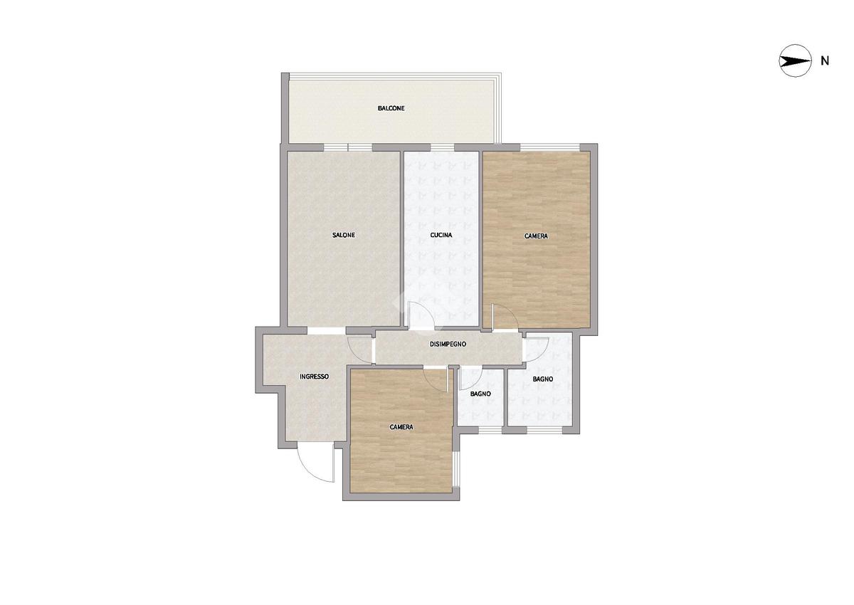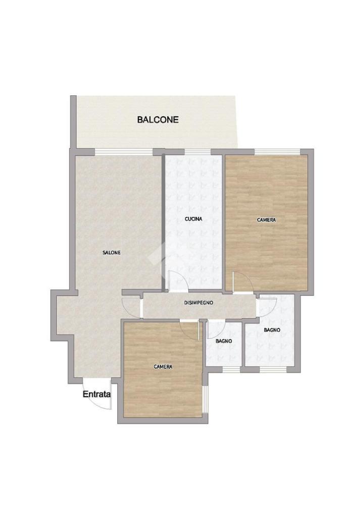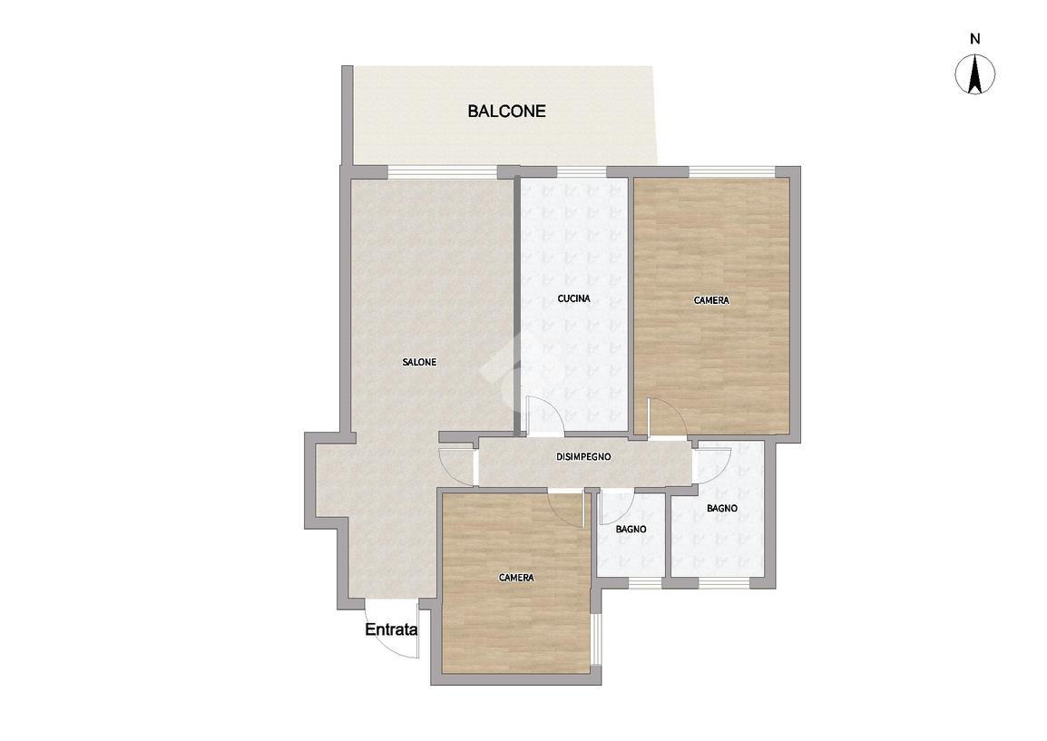 Internamente è così composto. Varcata la porta di accesso troviamo l'ampio ingresso che ospita un comodissimo armadio a muro e che conduce al salone di 25 mq, con accesso diretto al balcone abitabile di quasi 11 mq. Tornando indietro, alla destra dell'ingresso, troviamo un disimpegno che conduce ai restanti ambienti della casa, primo tra essi la cucina di 11.5 mq, anch'essa con accesso diretto al balcone. A seguire troviamo la zona notte composta da due ampie camere da letto, di 20.4 e 15.8 mq, e i doppi servizi, entrambi con finestra, con piatto doccia e vasca.