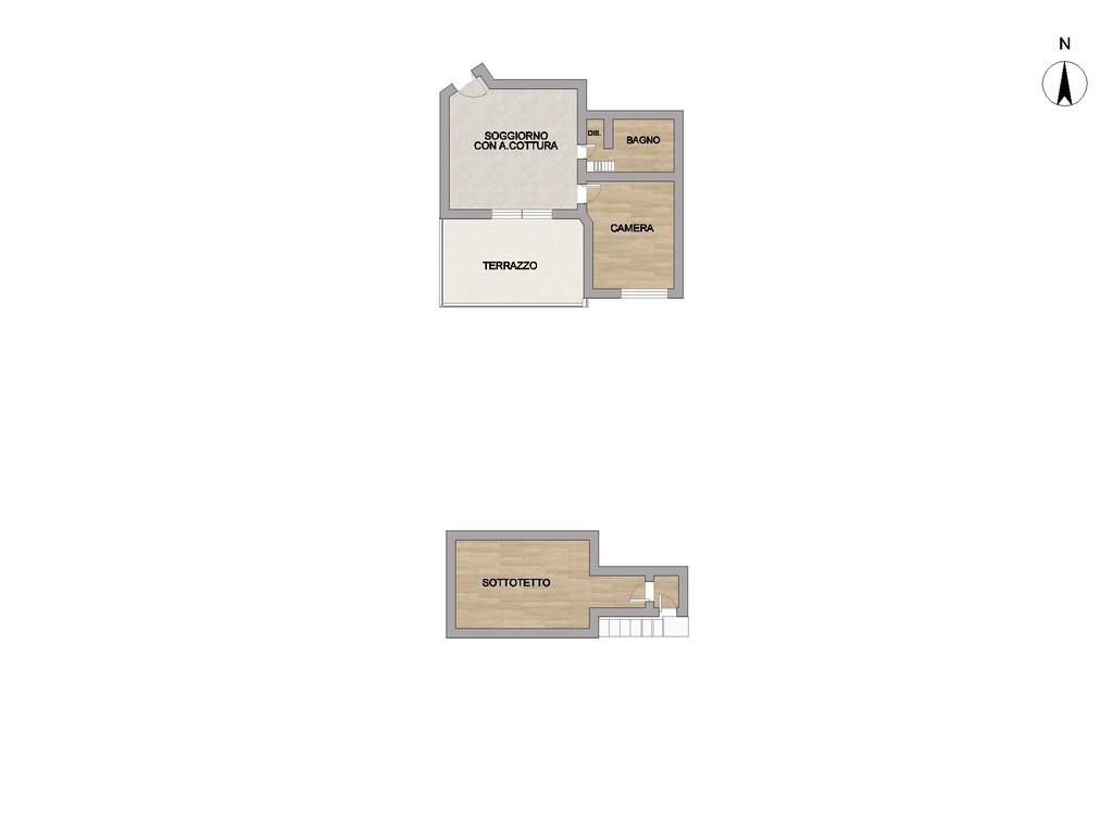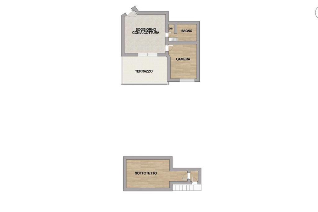 Al piano superiore è presente un sottotetto, uno spazio riservato e versatile, perfetto come zona notte aggiuntiva, studio o stanza per gli ospiti con cabina armadio. L'altezza massima è di 2.04 m e l'altezza minima è di 0.84 m