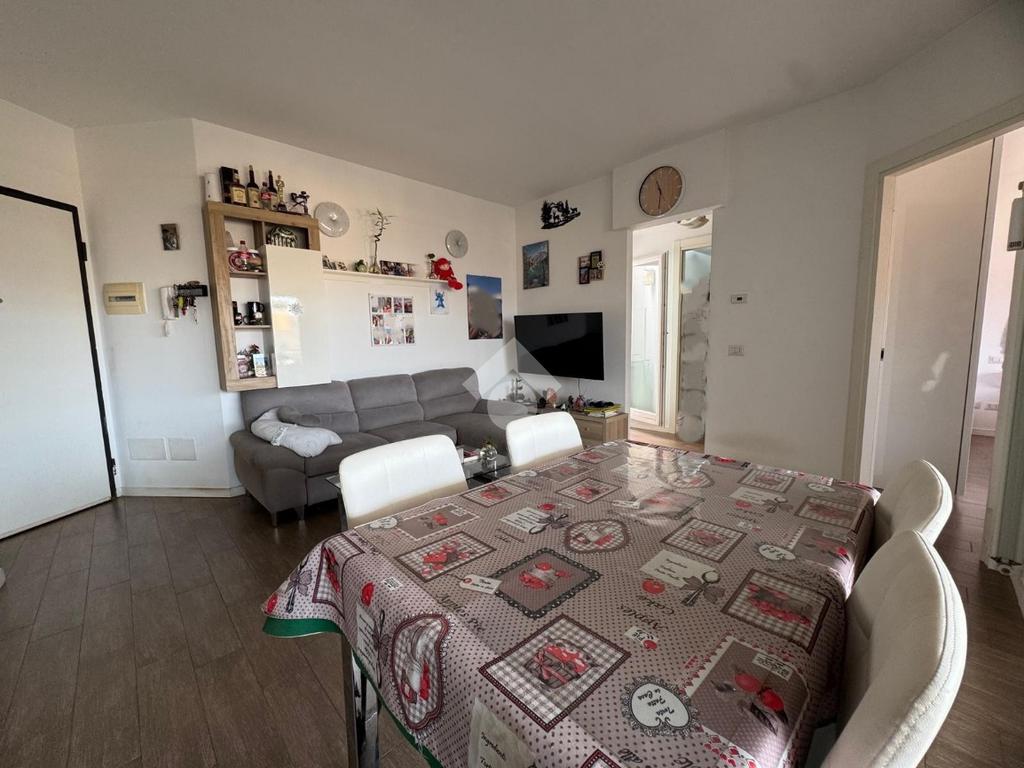 L’ingresso si apre su un accogliente soggiorno con cucina a vista, un ambiente funzionale e conviviale con accesso diretto tramite un’ampia vetrata al terrazzo di 14 mq, ideale per momenti di relax all’aperto. Sullo stesso livello si trova la camera da letto matrimoniale, il moderno bagno con box doccia e finestra ed un secondo spazio da poter utilizzare come zona lavanderia.