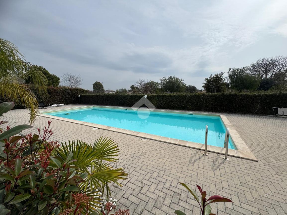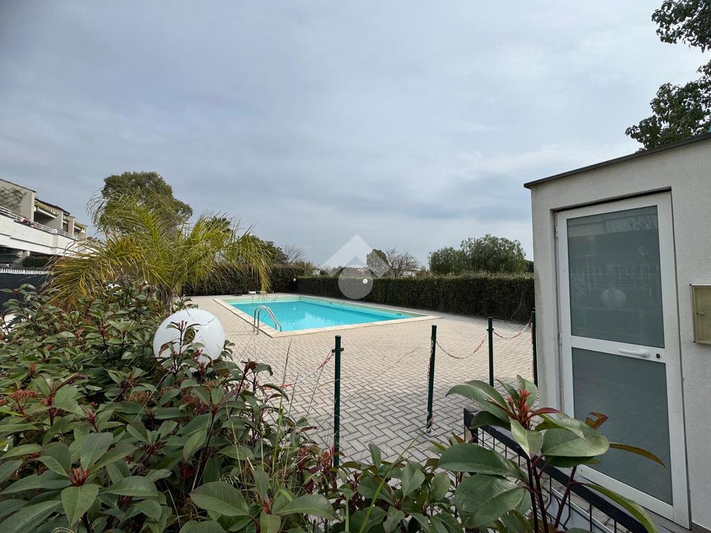 Situato all’interno di un elegante comprensorio residenziale, l’immobile si distingue per il contesto tranquillo e ben curato, arricchito da ampi spazi verdi condominiali e da una splendida piscina riservata ai residenti.